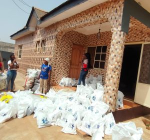 Every Children’s Day, we distribute school supplies—books, school sandals, school bags, and stationery—to pupils in government schools.